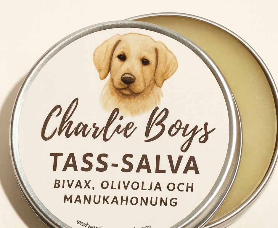 Charlie Boys Tass-salva med manukahonung är en mjukgörande och skyddande salva som hjälper hundens tassar att stå emot sprickor, irritation och slitage från kyla, fukt och vägsalt. Den bildar en slitstark, vaxliknande hinna som skyddar trampdynorna och är enkel att applicera.